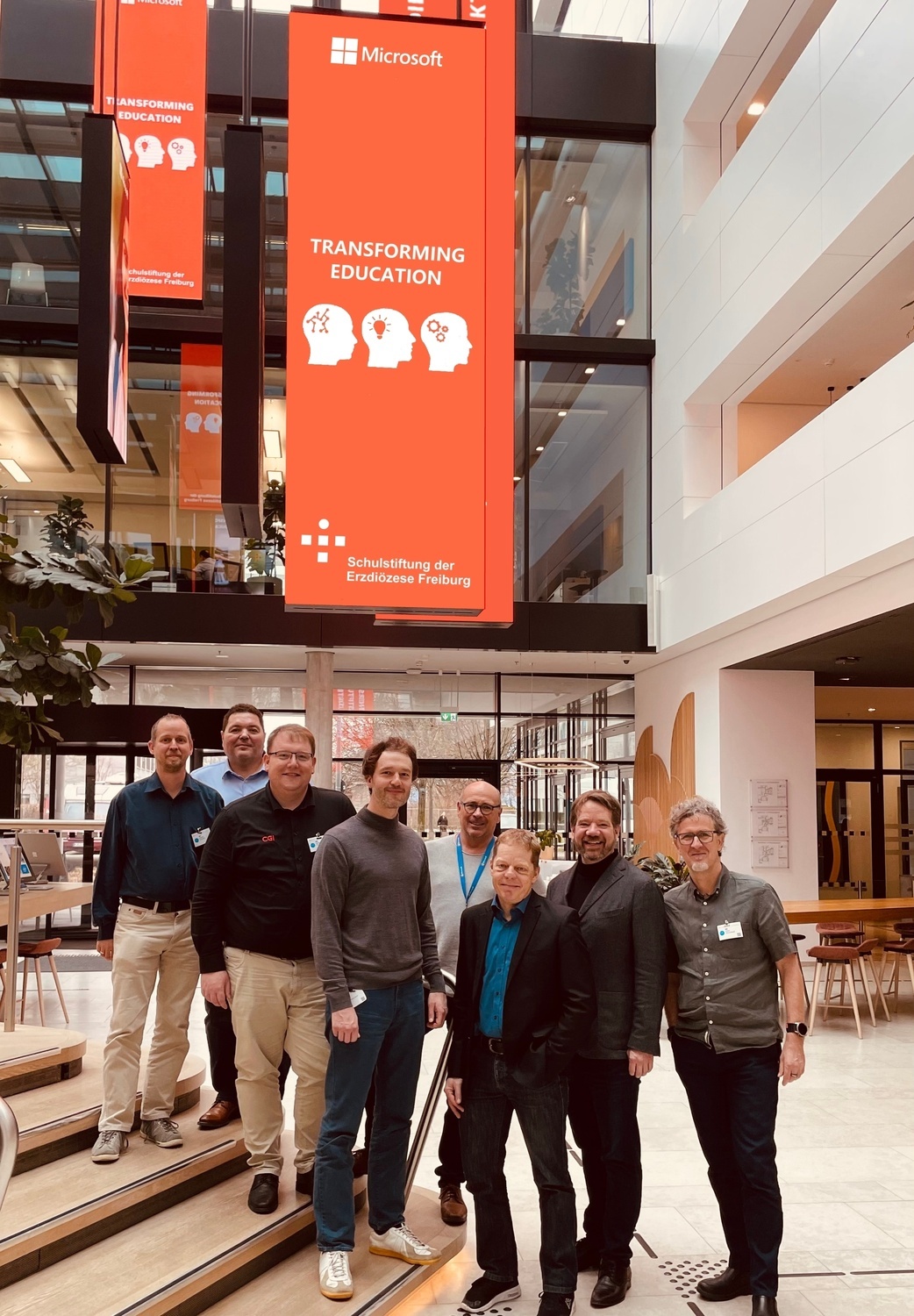 Microsoft-Zentrale München, 23.02.2024Mit dem Besuch bei Microsoft ist der Startschuss für das Projekt digitale Transformation offiziell gefallen. Nach intensiver konzeptioneller Vorarbeit und einem regen Ideenaustausch besuchte Projektleiter Dr. Michael Jülich, begleitet vom stellvertretenden Stiftungsdirektor Ralph Schwörer und dem Referenten für Grundsatzfragen Joachim Nebel die Firmenzentrale in München.