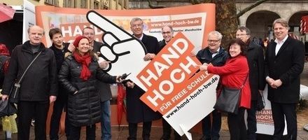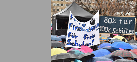 Bereits vor der Landtagswahl 2016 hat die Arbeitsgemeinschaft der Freien Schulen (AGF S), in der die unterschiedlichen Träger freier Schulen bzw. die entsprechenden Interessenverbände zusammengeschlossen sind, alles dafür getan, um in dieser für die Schulen existenziellen Frage endlich eine faire und verlässliche Ausgangslage zu erreichen. Der Tag der Freien Schulen im November 2016 mit seinem Abgeordnetenbesuchen sowie vielfältige weitere Kontakte zu den Abgeordneten des Landtags durch die unterschiedlichen Freien Schulen haben dazu beigetragen, für dieses Thema zu sensibilisieren. Höhepunkt dieser Bemühungen, auch in der Öffentlichkeit die Arbeit der Freien Schulen als wichtiges Element der Bildungslandschaft in Baden-Württemberg deutlich zu machen, war die Großkundgebung am 9. März 2017 auf dem Schlossplatz in Stuttgart. Bei strömenden Regen kamen über 11.000 Schülerinnen und Schüler, Lehrerinnen und Lehrer sowie Eltern zusammen. In Kurzbeiträgen stellten einzelne Schülerinnen und Schüler vor, warum Freie Schulen unverzichtbar sind und welchen Beitrag sie für das gesamte Schulwesen in Baden-Württemberg leisten. Die Schülerinnen und Schüler waren auf diese Kundgebung inhaltlich vorbereitet worden und hatten Gelegenheit, am außerschulischen Ort konkrete Erfahrungen mit Bürgerbeteiligung, Gesetzgebungsverfahren und politischer Diskussion zu machen. Die Zusage der Landesregierung, in einer beachtenswerten Kraftanstrengung 65 Mio. Euro zusätzlich für die Finanzierung der Freien Schulen einzustellen, die schon vor der Kundgebung bekannt war, sorgte verständlicherweise für eine entspannte und trotz Dauerregens fröhliche Stimmung unter den Teilnehmern.