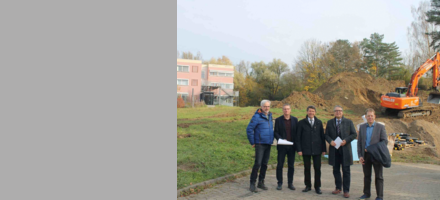 Im Rahmen eines Vororttermins stellten Bürgermeister Bruno Metz, Eberhard Pfister, Direktor der Heimschule St. Landolin, Ralph Schwörer, stellvertretender Direktor der Schulstiftung der Erzdiözese Freiburg, Peter Blaser, Geschäftsführer der ratio energie GmbH und Martin Oswald für die Fernwärme Ettenheim den aktuellen Stand der Bauarbeiten vor.